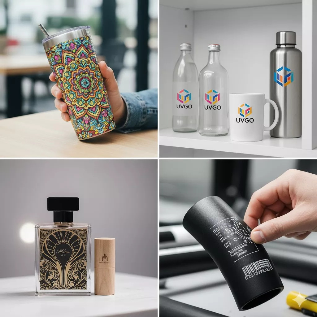 Glassware & Bottles: Ideal for printing logos, images, and text on glass bottles, wine glasses, and promotional items.