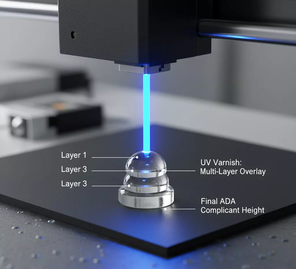 This instant-curing process is the secret to braille, 3D textures, and thick-layer prints. It breaks free from flat, 2D limitations.