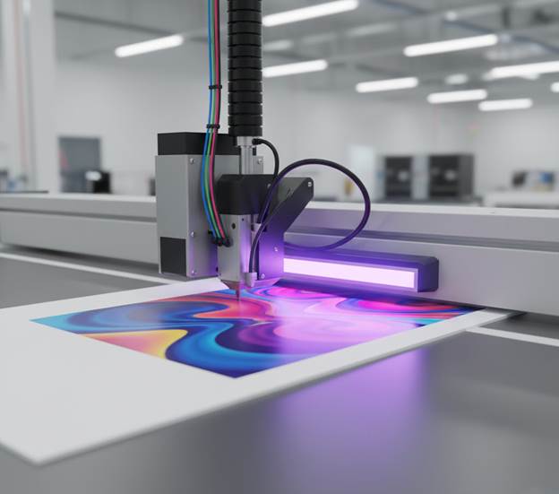 Extreme Durability: The cured ink is not just dry, it’s a hardened acrylic layer. It is highly resistant to scratches, water, and sun, creating incredibly durable print substrates.