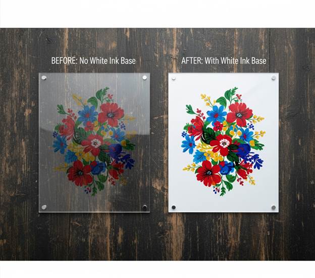 The Challenge: You print a beautiful, full-color logo on a black phone case or a clear glass award, and the image looks dull, dark, and semi-transparent.